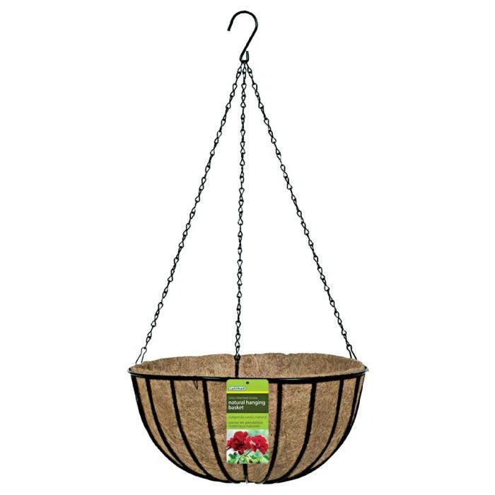 Economically priced with a classic design. Heavy gauge wire with plastic coating for long life. Comes with a pre-formed coco liner and attached hanging chains and hook.