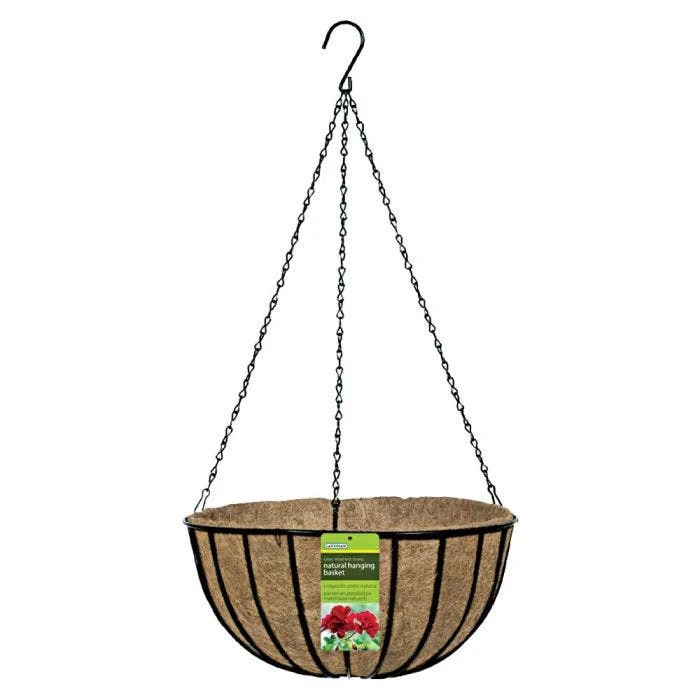 Economically priced with a classic design. Heavy gauge wire with plastic coating for long life. Comes with a pre-formed coco liner and attached hanging chains and hook.