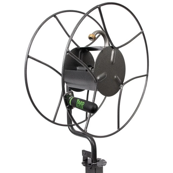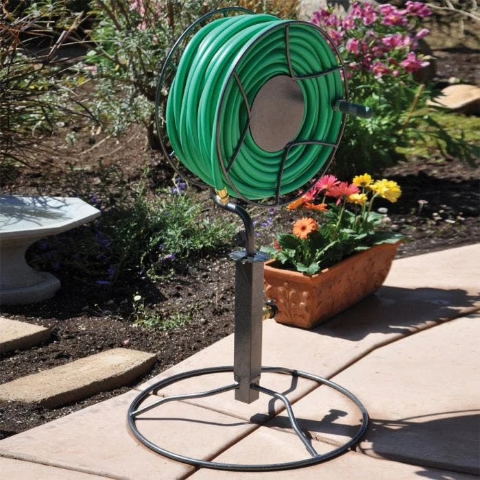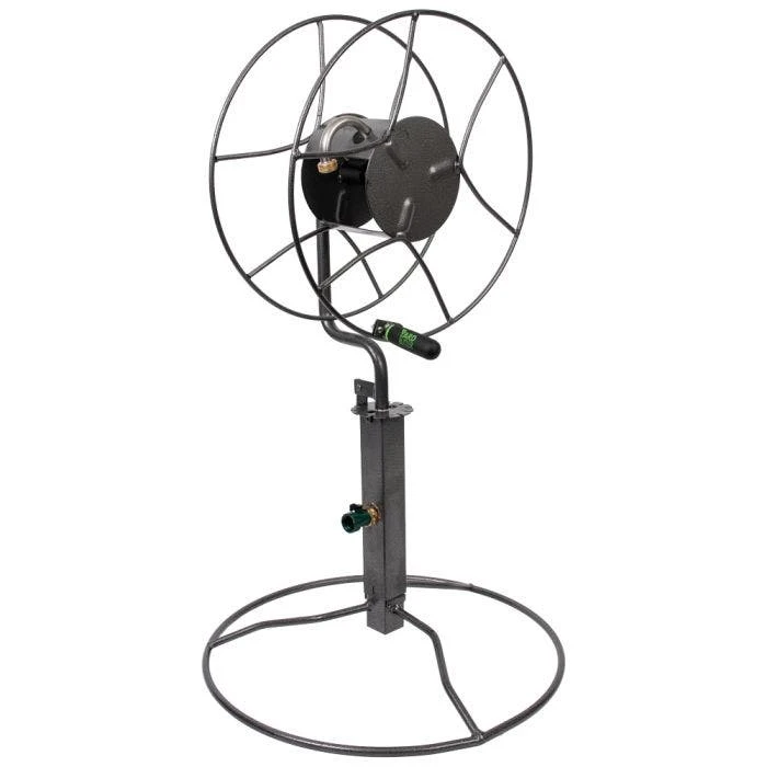 Effortlessly maintain your outdoor space with the Free Standing Patio Swivel Hose Reel. Boasting 360 degree rotation, anti-kink design, and capacity for 200 feet of hose. Featuring heavy steel construction, powder-coated steel, and a kink-free center spool design, it’s built to last outdoor use and can deliver water to a 3-acre area. Standing 40 inches high, it eliminates the need to bend or strain to reel in the hose, ensuring comfort during a long workday. Guaranteed to be free from any material or workmanship defects, it’s a must-have.