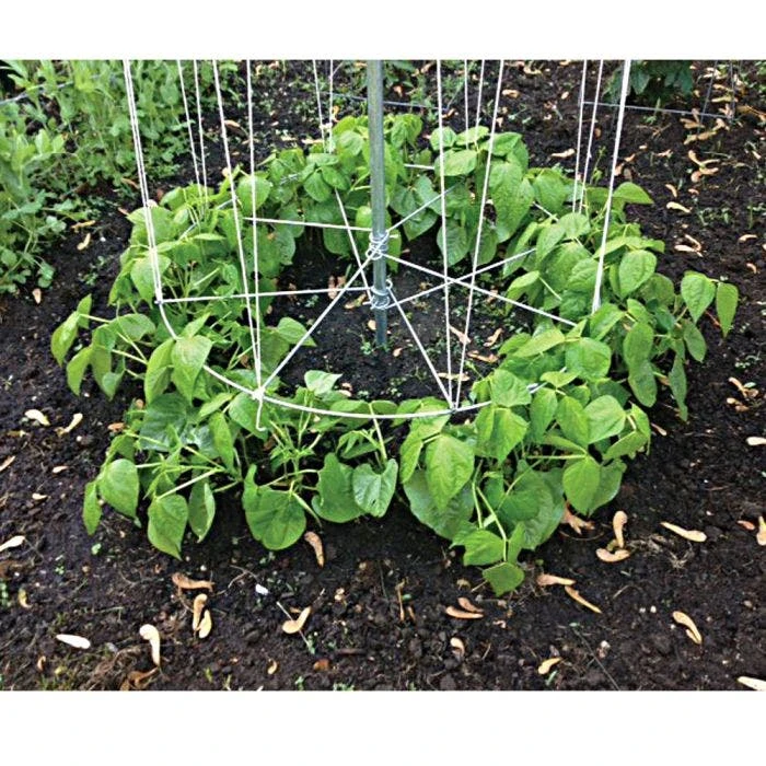 Take full advantage of your growing space with our pole bean tower. Sturdy galvanized tower is 72″ tall and 30.25″ wide, providing enough space to grow 12 pole bean vines or 36 pea vines. When in bloom the tower adds an eye-catching focal point to your garden.