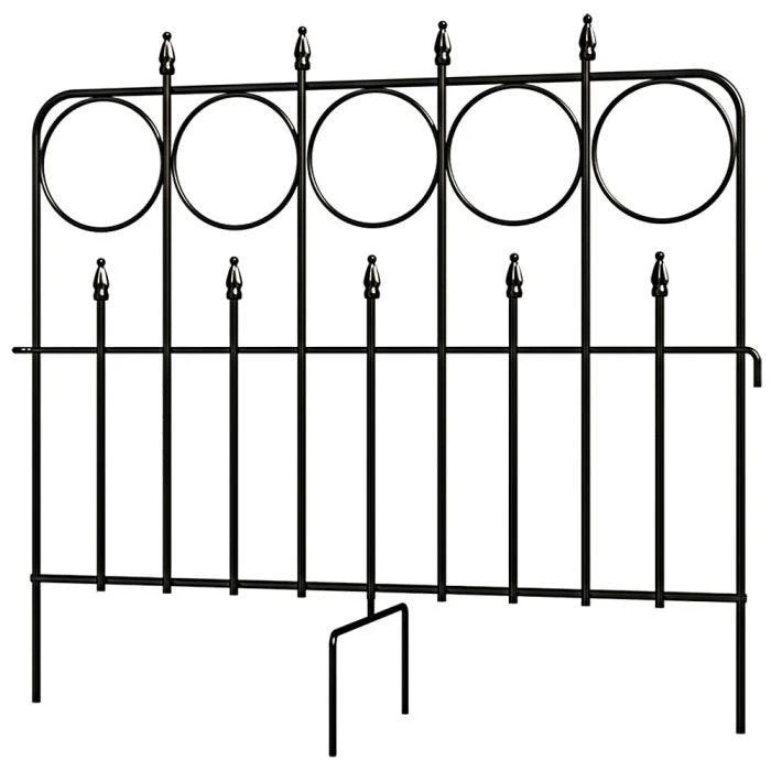 This sectional fence features an interlocking, welded steel hook and loop construction with a unique center stabilizer foot to keep multiple sections aligned and provide stability. Perfect for protecting areas from small pets. Black powder-coated steel sections measure 32 inches high x 36 inches wide. This is a case of 10 panels.