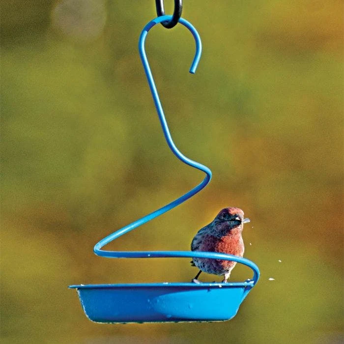 A simple design that is perfect for feeding birds and decorating your backyard! Holds a variety of seeds and mealworms, or attach jelly or fruit to attract more birds. Made of durable metal construction and ready to hang. The spacious container allows birds to rest and feast on the side. It hangs from a sturdy and trendy handle that is also made of the metal construction!