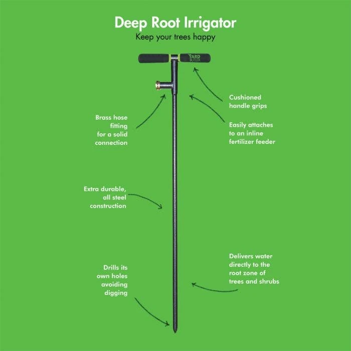 Keep your trees and shrubs healthy and happy all year long with the Deep Root Irrigator. This drip watering irrigator tool delivers water straight to the root zone, encouraging deep rooting and reducing evaporation and runoff. It’s also a versatile water blaster for dozens of other applications. Made of heavy-duty, rust-resistant powder-coated steel and guaranteed for life, it’s a smart investment to conserve resources, save money, and keep your landscape thriving even in drought conditions. At 36.2 inches tall and weighing just 2.4lbs, it’s the perfect size for deep watering.