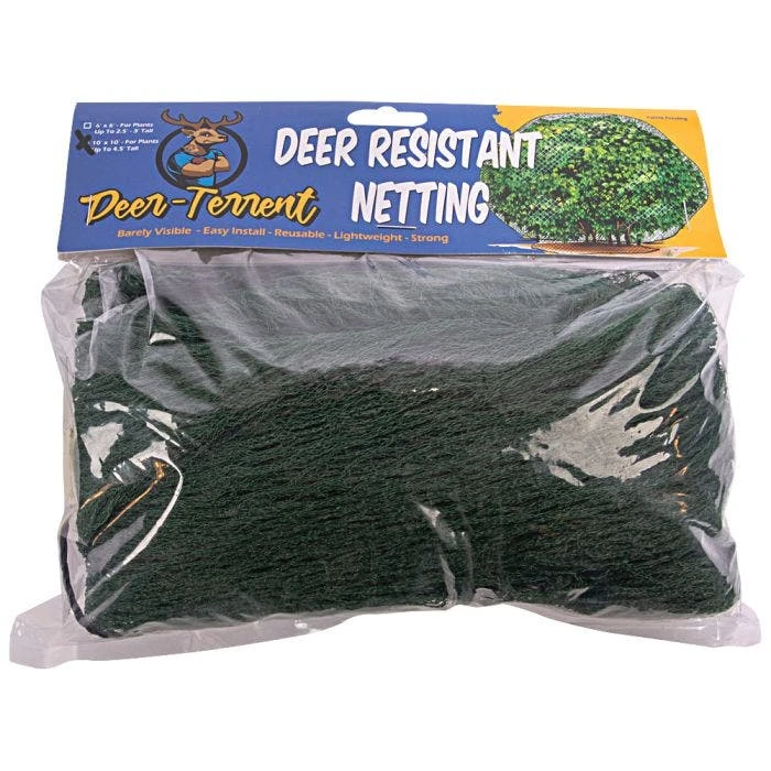 Easily installed and removed, Deer-Terrent Plant Netting Cover protects plants and shrubs of various sizes, the small will cover shrubs up to 2.5-3 feet tall and the medium will cover up to 4.5 feet tall. The unique attachment design eliminates the worry of the netting blowing away or moved by animals. While on plants the netting will not impede new growth. Easy to remove in the spring when food becomes more available for deer. Wrap a little tighter to provide protection from snow and ice.