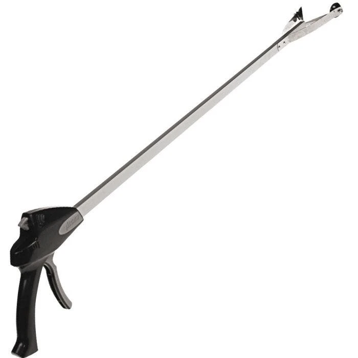 The newer ergonomic handle design on the Pro reduces hand and finger stress. Locking feature allows jaws to lock on an object for retrieval.