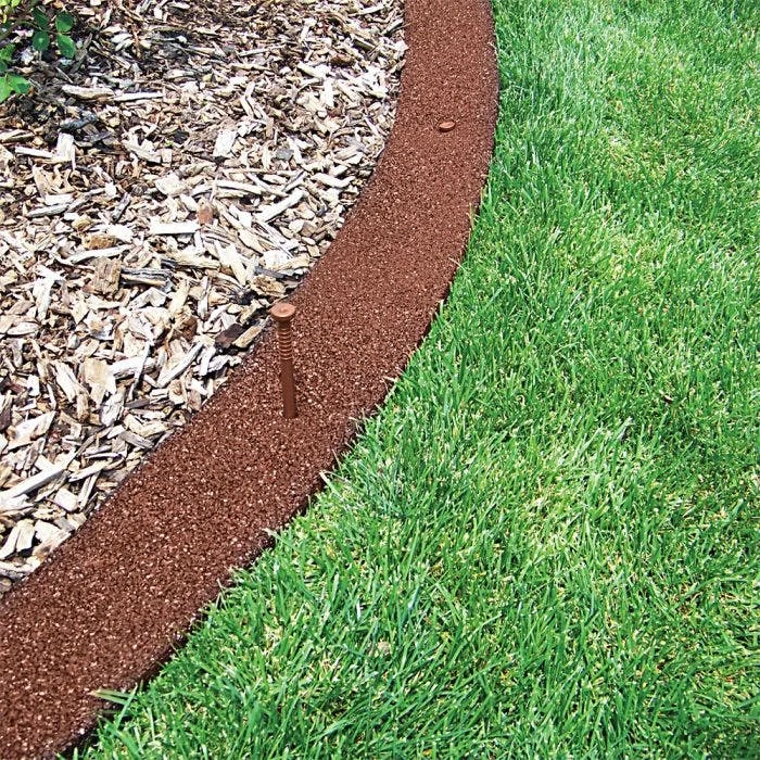 Earth Edge recycled rubber roll edging is mixed with a colored binder and molded to create edging strips with a durable finish. Perfect for under fences, around beds or along sidewalks. Weeds are blocked but air and water can still pass through.