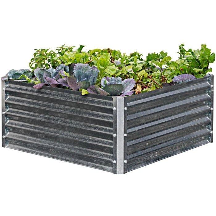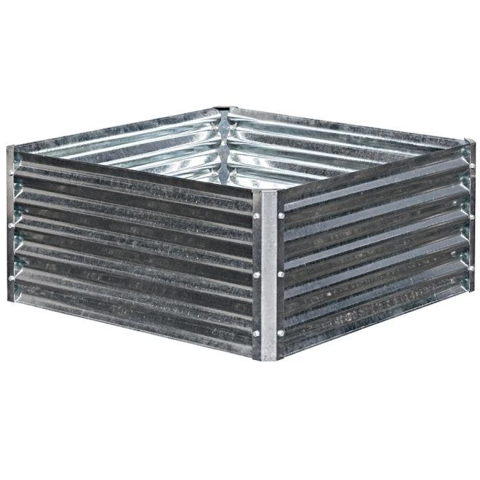 These planters are made from galvanized steel that will not warp, crack or rot and can be recycled at the end of their service life. This 40 inch x 40 inch planter has 17 inch high sidewalls to provide ample soil depth for deep root plants. Ideal for use with tomatoes, arborvitae, dwarf fruit trees, herbs or flowers.