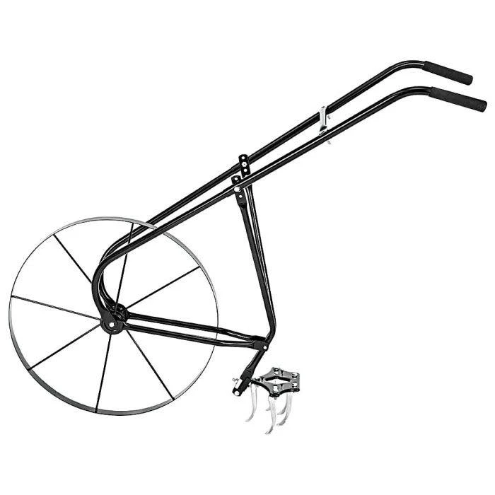 This Kentucky-Style Cultivator is incredibly versatile. It is perfect for furrowing, cultivating, and many more garden-related tasks. The frame is small enough to get into tight rows yet offers superior stability. This tool handles even the roughest terrain with ease, thanks to the two-foot diameter wheel. The adjustable handles allow you to accomplish any task comfortably. Consider purchasing the . This add-on enables you to use the cultivator to cut through weeds like butter!