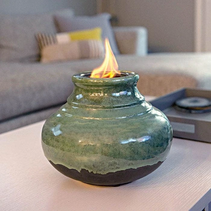 Our ceramic accent fireplaces combine the ancient art of molded earthenware with modern bio-fuel technology. These ceramic vessels are created by hand in the time honored tradition of craftsmanship and elegance, and include a stainless steel fuel can reservoir for safety and convenience. Designed to be used with EchoFlame gel fuel. No smoke, soot or odor to contend with, only convenient clean burning and beautiful fireside relaxation.