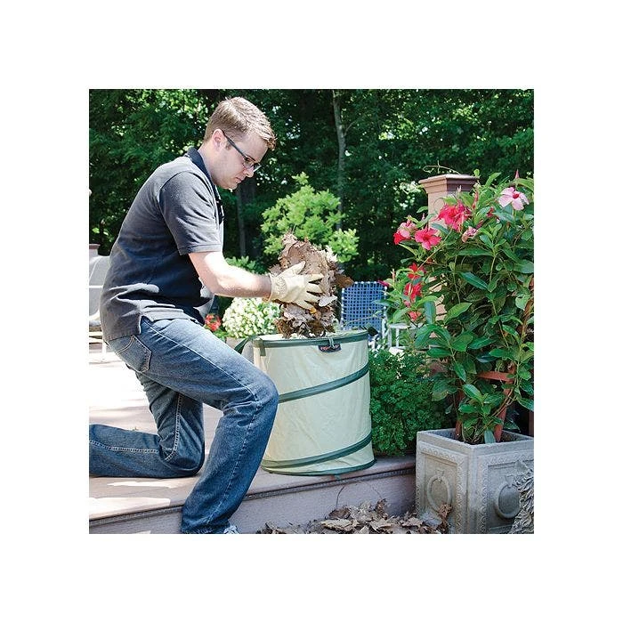 Fiskars® Kangaroo Bags have a unique pop-up design that not only makes them easy to set up, but also holds itself open while you use your hands to gather and load leaves, trimmings, or weeds. Sturdy handles offer comfort and easy unloading of contents. And when you’re done, simply collapse for compact storage. Has a soft and flexible bottom, constructed of tear and mildew-resistant, vinyl-coated polyester. This provides durability and easy cleaning, as well as protects against UV effects.
