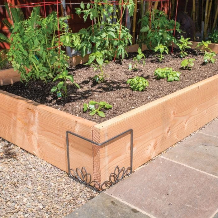 Powder-coated steel garden corners in four great colors make building a raised garden bed easy as can be. Just insert four 2 inch boards in your choice of height into the corner brackets in any size configuration you like and add soil. The tight fit ensures dirt and water won’t leak out of the sides. Now you can have a garden almost anywhere without having to dig up the ground. Plant flowers, vegetables, herbs, bulbs, or whatever you desire. Perfect for smaller yards and even patios or balconies.