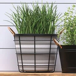 Modern Farmhouse Bushel Baskets With Bistro Print Liners – 10 In. Dia.