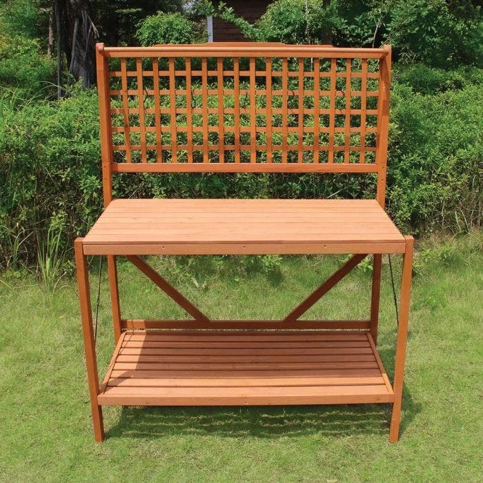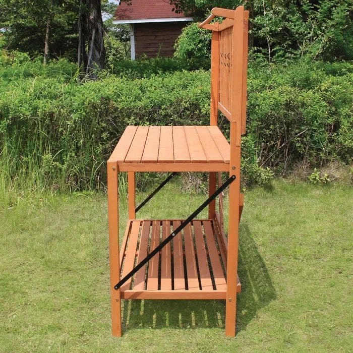 This potting bench provides a large workspace to give you all the room you need to prepare your garden. Doubles as an outdoor buffet table or for additional storage and counter space in your garage. Some assembly required.
