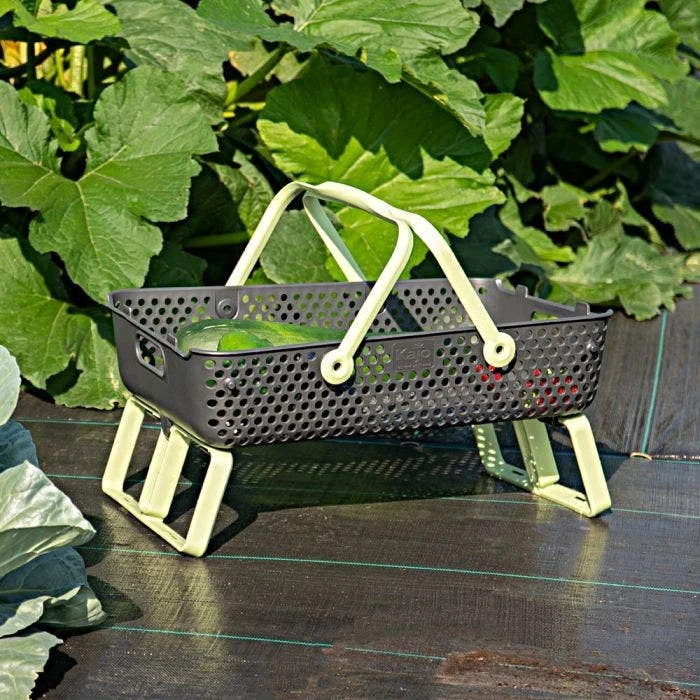 A modern twist on the tradition harvesting hods and baskets Th smooth, perforated interior won’t bruise produced while gathering and rinsing your vegetables. Fold out legs keeps your harvest off the ground and allow it to drip dry thoroughly before bringing it in the kitchen. These hods also have a unique feature by allowing you to stack mod hods of the same size, for a fast, space-saving storage in your kitchen, pantry, mudroom or anywhere. When the legs are folded out notches on the top of the baskets allow for a secure connection. Bring to the farmer’s market or carry supplies to the garden with these Mod Hods. Long lasting, easy to care for, simply rinse after each use and it’s ready to go! Available in 3 sizes: 4 liter, 15 liter and 20 liter baskets.
