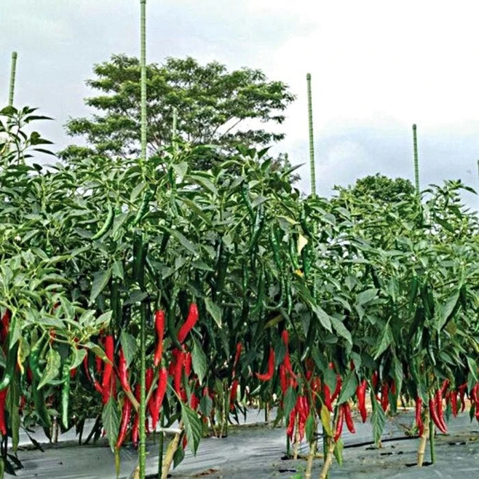 The ring spacing is closer together near the bottom and increases as it goes up to the top, to coincide with a plant’s growth. Double rings every 50 cm help you insert to an even height. Protruding rings offer more tie off areas. Waterproof, heat-sealed caps stay in place. The look and feel of bamboo, with the strength of steel. Durable heavy gauge steel in all-weather, polyolefin resin coating won’t warp, rot or rust. Resists chemicals and lasts for years.