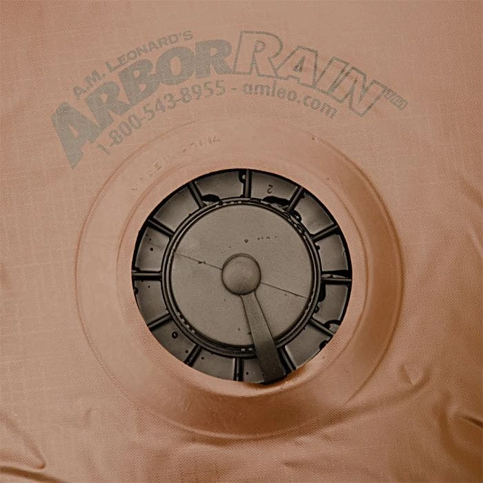 Use the Leonard ArborRain Hydration System to give your plants and trees complete water coverage. This high-capacity version holds 32 gallons of water. It utilizes two removable emitters to release this water slowly over a 5 to 8-hour period. The 1-5/8-inch diameter fill port features a threaded cap and fits a wide variety of hoses for quick filling. This model fits trees and shrubs up to 6 inches in diameter. The durable plastic material contains two additives to protect it from sunlight and cold weather.