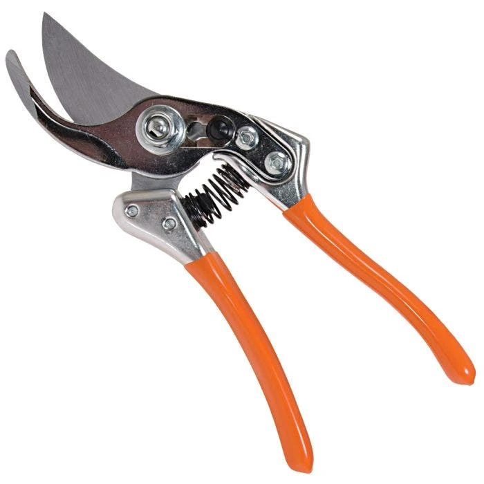 Lifetime warranty. Features flat, extra wide handles that offset finger and palm pressure for a comfortable feel. High carbon steel cutting blade is extremely sharp and finished with a hard chrome finish. Outfitted with non-slip vinyl grip, slide lock mechanism, sap groove, and solid aluminum handles. 0.75-inch cutting capacity; 8.5-inch overall length; shipping weight of 0.5 lbs.