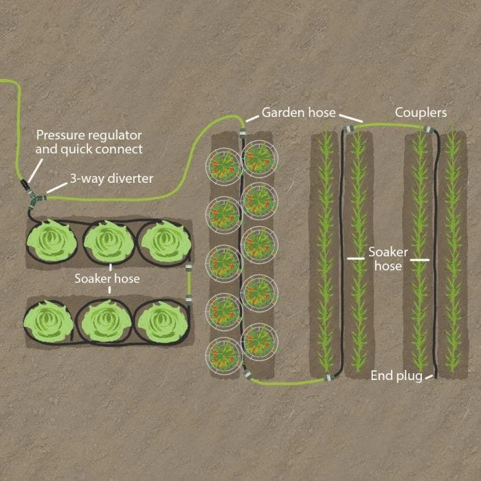 - For larger plants, loop the soaker hose around the plant at the drip line