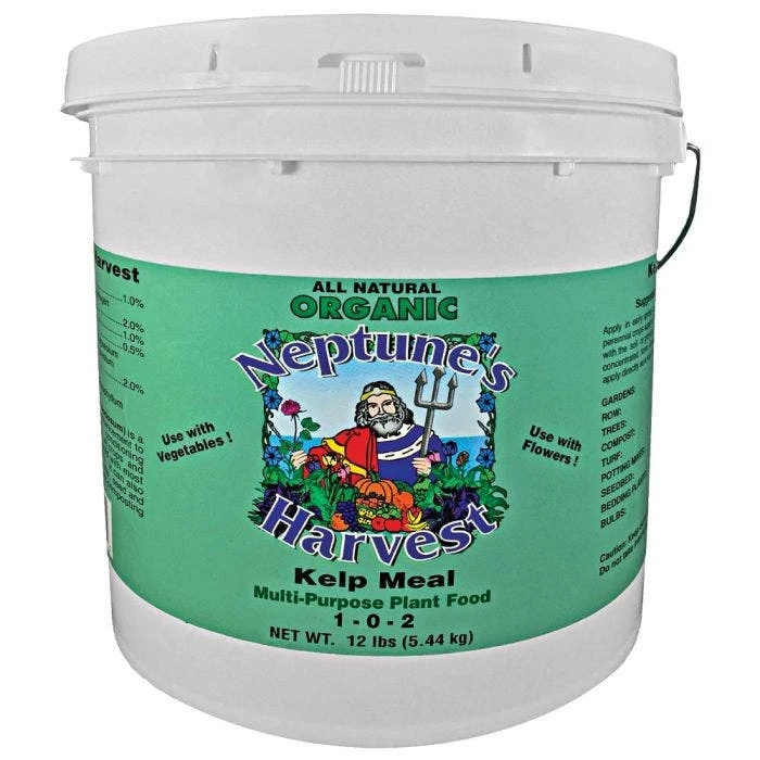 Neptune’s Harvest contains dried and ground rockweed (ascophyllum nodosum). Rockweed provides plants with over 60 minerals, carbohydrates, and amino acids. This bucket contains 12 pounds of Kelp Meal.