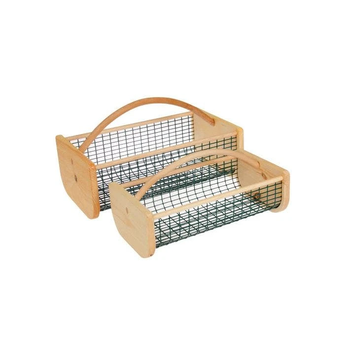 In olden times, these hods were used for carrying everything—from bricks to laundry! Styled after a traditional clam hod, this version is built to last from quality hard and soft woods and durable vinyl-covered mesh. Constructed with 3/4-inch thick pine sides and birch side rods, it also has a sturdy, food grade PVC-coated wire body, and a steam bent handle for a handsome look. Now in two sizes! Garden Hod Junior is ideal for carrying smaller loads and just the right size for your little helpers! 16in L x 9in W x 7in H and hold up to 8 quarts (or 1 peck).