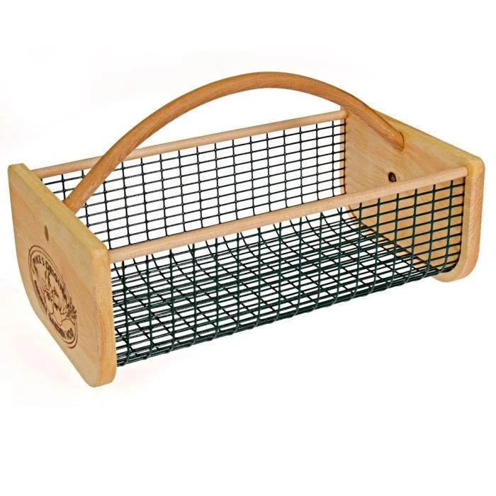 In olden times, these hods were used for carrying everything from bricks to laundry! Styled after a traditional clam hod, this version is built to last from quality hard and soft woods and durable vinyl-covered mesh.