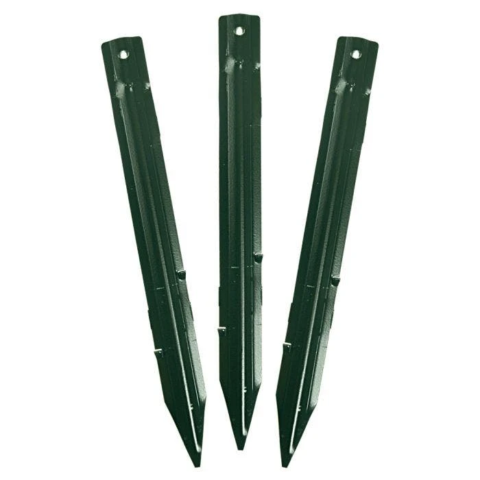 - The 8′ pieces come with 3 stakes and 3 slots to insert them
