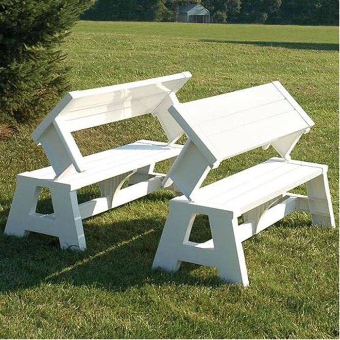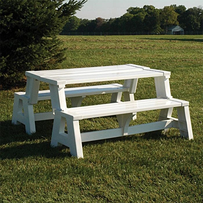 The quick-change 5-foot convertible bench makes perfect sense; the back flips down in seconds to offer a sturdy 31-inch high table with comfortable seating on one side, and ample wheelchair access on the other. Two benches together form a full sized picnic table with plenty of room for four adults. Use as flexible seating anywhere you need it: patio, porch, balcony, by the pool, anywhere in your yard or home – indoors or out! Each bench weighs only 43 pounds, making them lightweight enough to move easily to your favorite campsite or tailgating party. Maintenance-free resin and PVC construction: never needs painted, will not splinter or rot, and is UV treated for all-weather durability. Everything is included for easy assembly. This is one secret you’ll be glad to share! Benches are sold individually; to make a full-sized picnic table, order a pair.