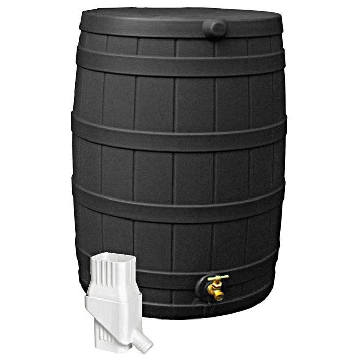 It holds 50 gallons and has a mesh screen to keep out debris. Also comes with the simple to use Diverter Kit to connect to any downspout. This barrel can be linked to other rain barrels and has a flat-back that can sit up against an exterior wall . A standard 3/4″ brass spigot is included. BPA-free plastic construction. Made in the USA.