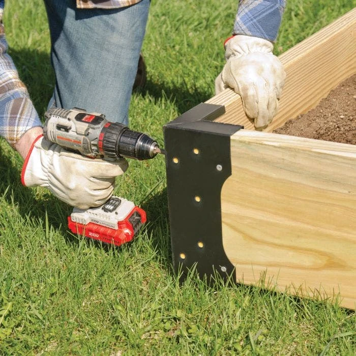 Rugged powder coated steel corner brackets hold up to 2in x 12in planks together for a permanent raised garden bed frame (2 x 12 in lumber; the actual opening that holds the board is 1.5″ wide). Easy screw together assembly. Pack of four completes one raised bed. Brackets measure 12in H x 6.5in W x 6.5in D. 16 screws included.