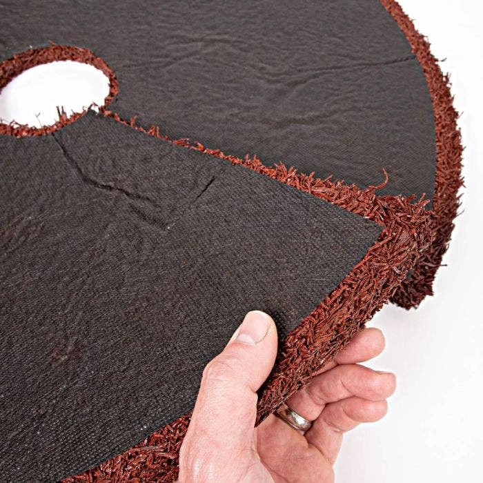 Achieve that manicured look around your trees without time-consuming edging, spraying, weeding, raking, and re-mulching. Rubberific® is mixed with a special bark-colored binder and molded to form a tough, flexible mat that allows air, water, and nutrients to pass through. Now produced with a layer of weed fabric on one side, say goodbye to weeding around your trees for years to come.