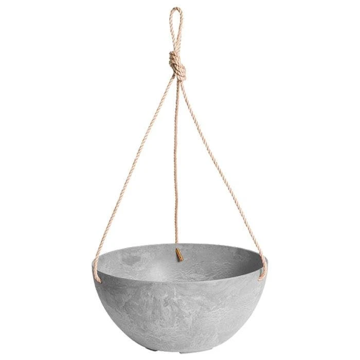 Hanging Napa Bowls are sure to stand out on your porch. These unique hanging planters resemble artistic stone and hang from a rustic rope. They are 12″ in diameter and 5.5″ deep. Available in three colors: grey, black, and rust. Choose below.