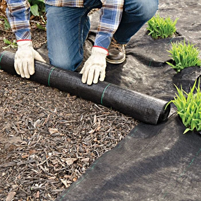 Weed Barrier Keeps your landscaping looking sharper longer! Effectively controls unsightly weeds and seed germination reducing the need for chemicals and weeding – saving you time and money. Tightly woven polypropylene is permeable to air, water and other valuable nutrients promoting healthy plant growth. Will not rot, mildew or become brittle. Easy to install. Standard Grade 4.75 oz, 3 ft x 50 ft, 5.5 lbs.