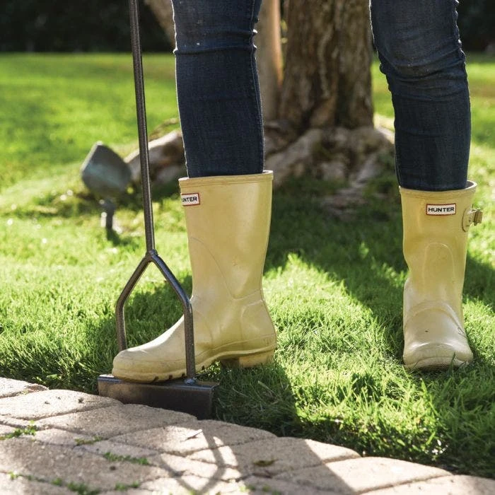 A uniquely designed blade and long handle make edging far easier and more effective. Step perpendicular to cut straight down, or position your foot sideways for a rocking motion.