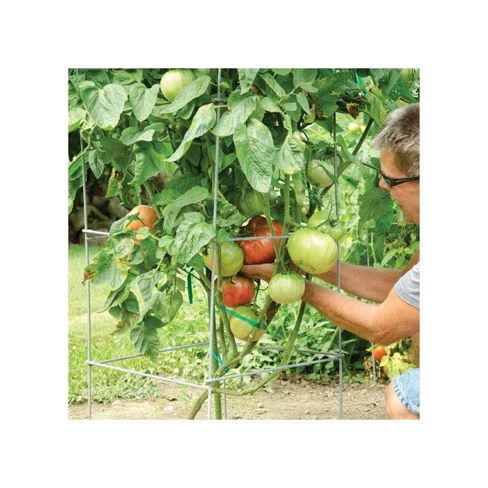 Super-Sturdy Professional Folding Tomato Cages are built strong to support the hardiest tomato varieties, recognized for tall growth and heavy fruit production. To test the cages, we asked our local tomato growing champion to put them to work. His tomato plants stood tall and produced another award-winning crop. Nearly 1/4 inch thick galvanized steel construction provides years of use. Fold flat for compact storage.