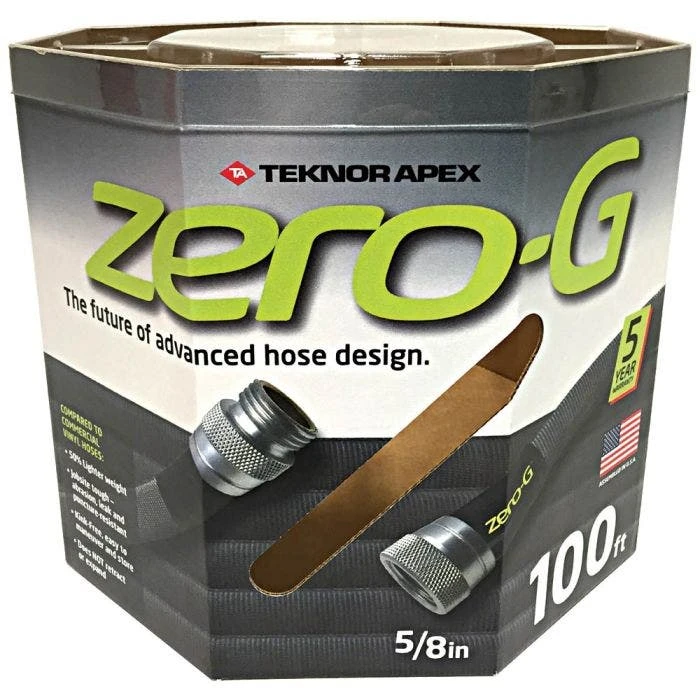 The Zero G Hose is 50% lighter than a standard hose and has a high burst strength of over 600 PSI, along with a smooth glide over surfaces without marring or snagging. It is also pliable and compact with an ergonomic, crush proof couplings and drinking water safe, lead free, and Prop 65 compliant.